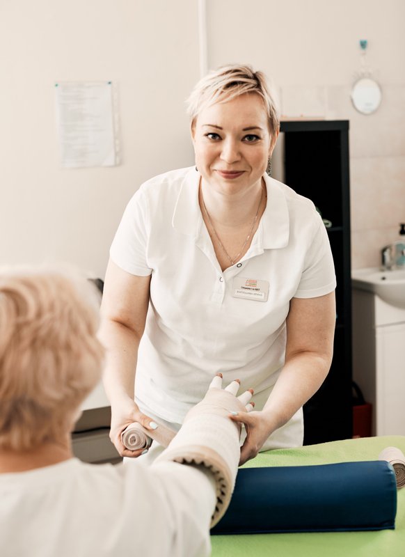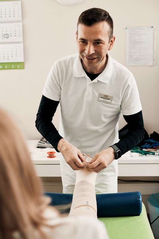 Начали процедуры. Никого из массажистов, которых видел в клинике в прошлый раз, я не встретил. А жаль. Время процедур постоянно меняли, что-то там переносили, массажиста иногда приходилось ждать по 25-30 минут. Неудобно это все было. В середине курса мне сказали, что нужен новый компрессионный трикотаж. Я знал, что это надо, и не сопротивлялся. Оплатил еще одну не маленькую сумму. Через 2 недели стали примерять трикотаж, а он мой отёк не удерживает. От слова совсем! В общем, лечение закончили, врач убедил меня забрать неподходящий мне трикотаж, и отпустил с миром. Через две недели отёк вернулся, как будто бы никакого лечения и не было.